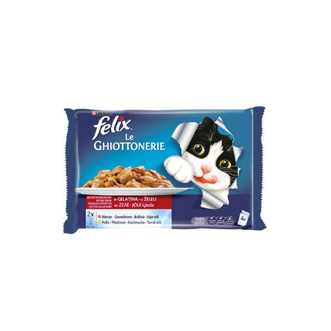 Purina Felix Le Chiottonerie Βοδινό / Κοτόπουλο / Λαχανικά σε Ζελέ 85gr 4τμχ