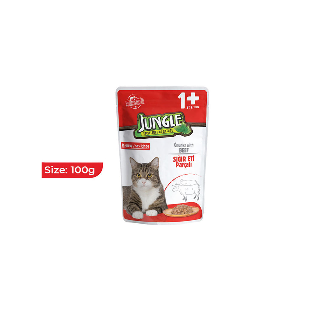 Jungle 1+ Υγρή Τροφή για Ενήλικες Γάτες σε Φακελάκι με Μοσχάρι 100gr 24τμχ