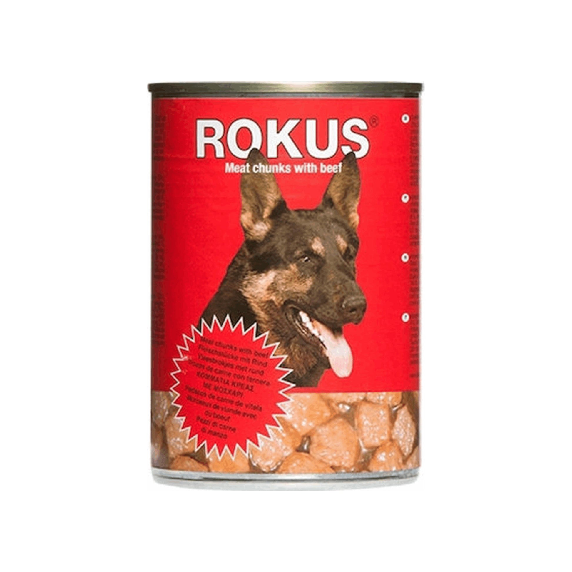 Κονσέρβα Rokus για σκύλους 410gr με γεύση μοσχάρι σε συσκευασία 24τμχ