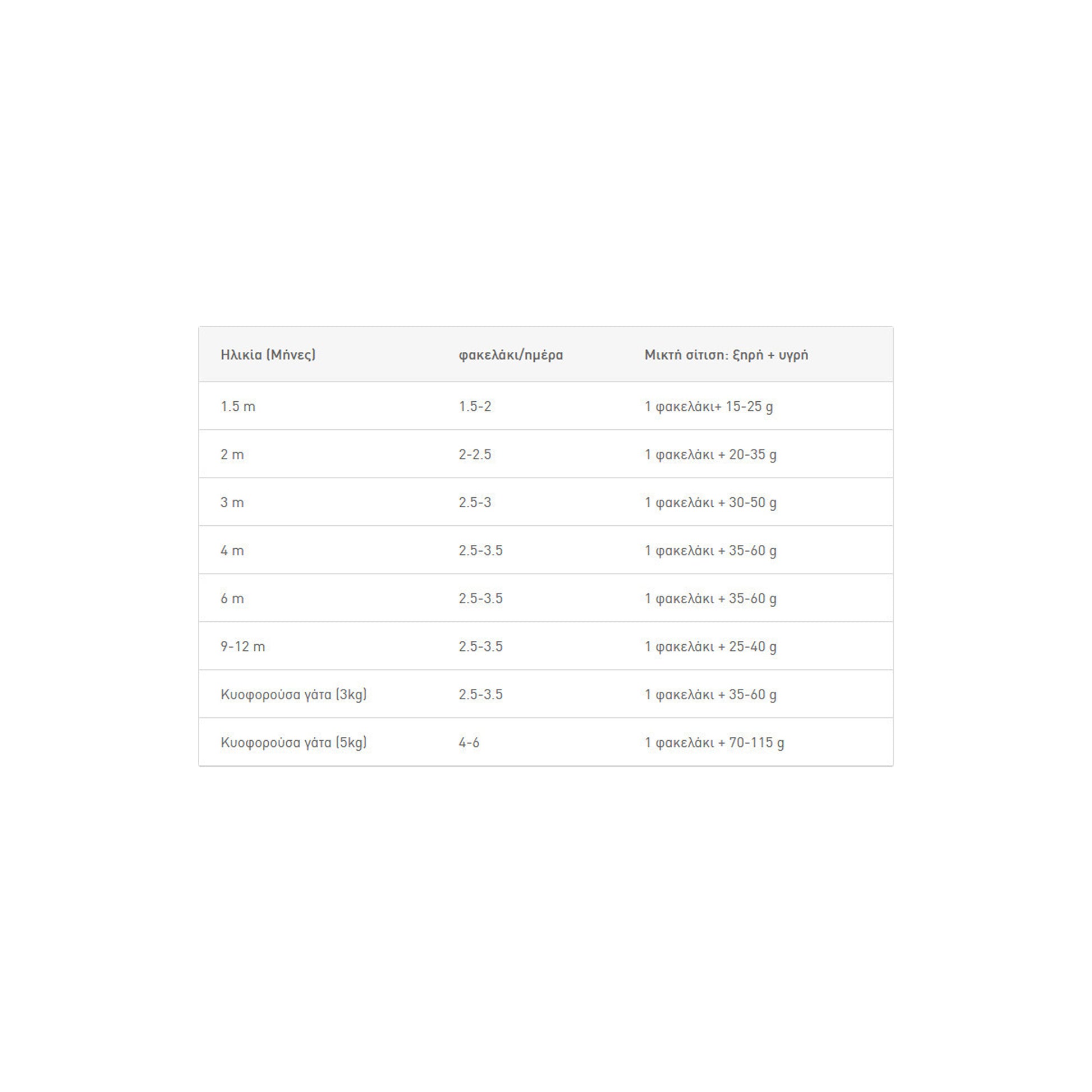 Υγρή τροφή με κρέας πουλερικών. Κατάλληλη για όλες τις ανήλικες γάτες, καθώς και για τις μητέρες τους κατά την περίοδο της κύησης και της γαλουχίας. Περιέχει ψιλοκομμένες φέτες κρέατος σε σάλτσα.