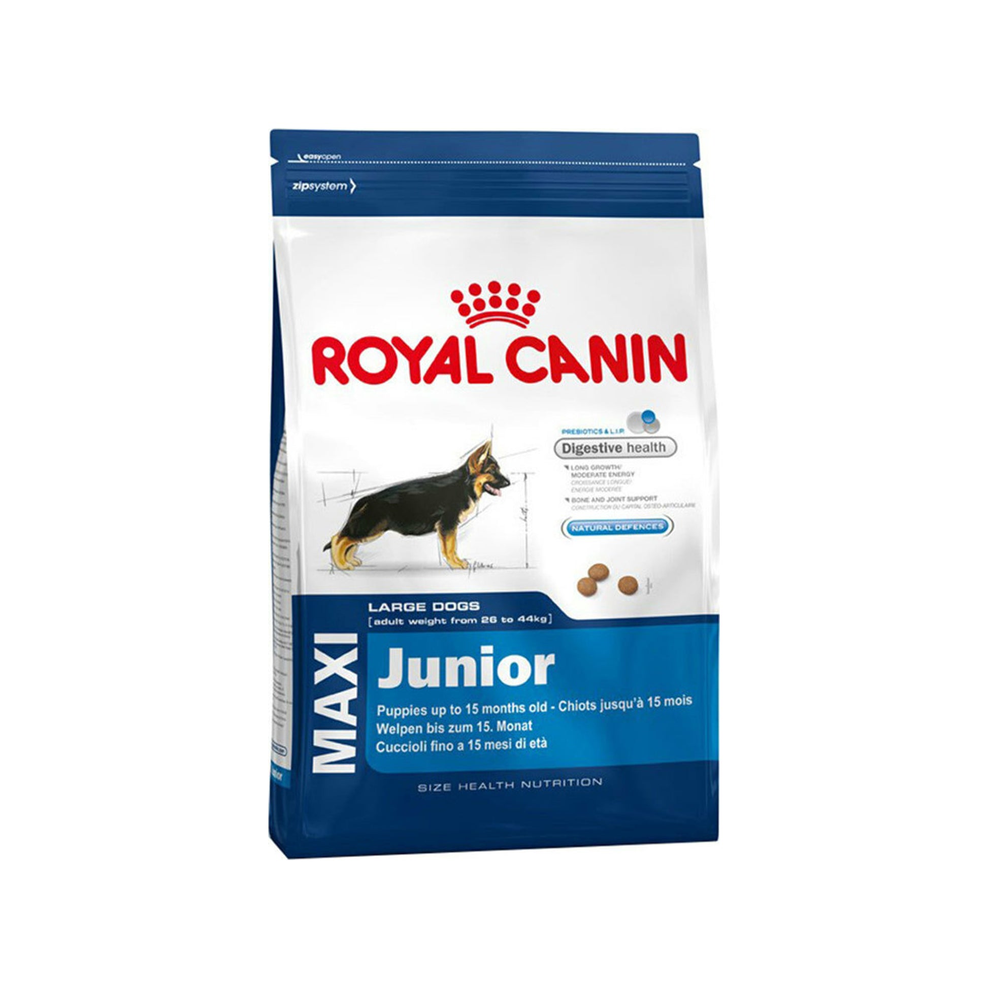 Η Royal Canin Maxi Puppy (Junior) είναι μια πλήρης τροφή για νεαρούς σκύλους μεγαλόσωμων φυλών έως 15 μηνών.