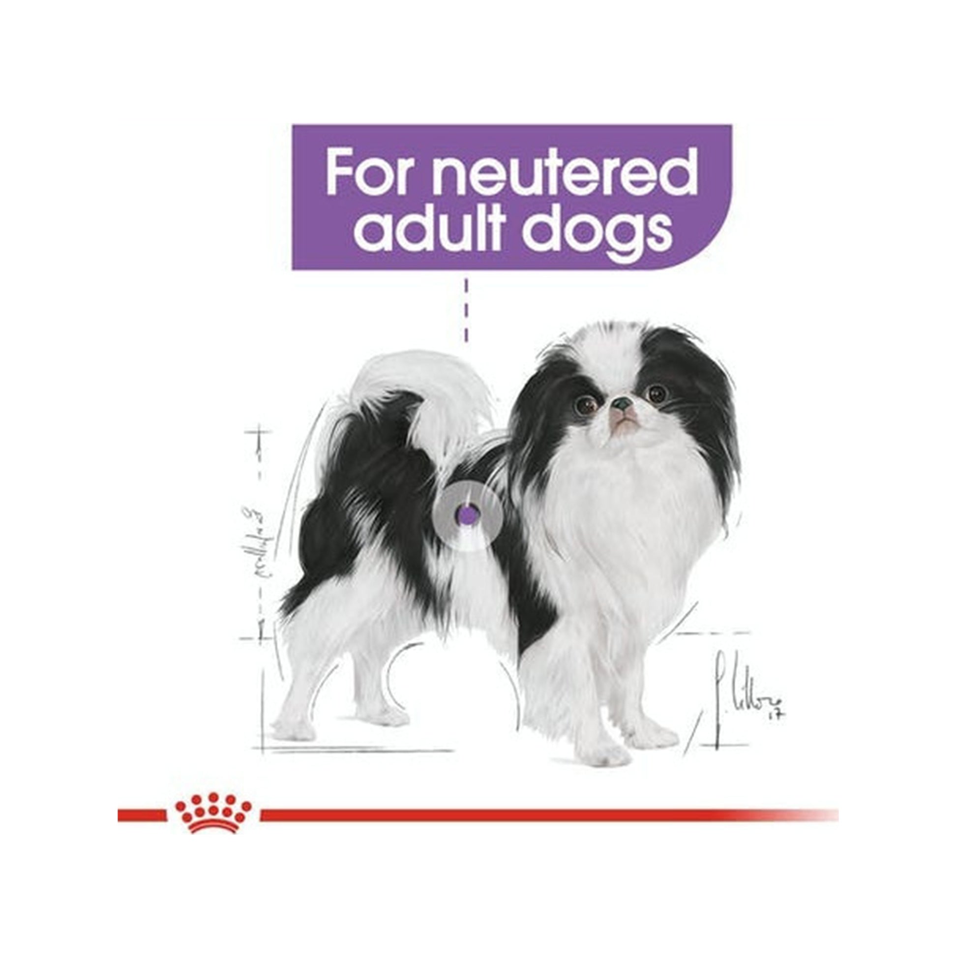 Ξηρά τροφή από την Royal Canin, κατάλληλη για ενήλικους στειρωμένους σκύλους. Περιέχει μέτριο επίπεδο σε λιπαρά για τον περιορισμό της αύξησης του βάρους, καθώς η στείρωση επηρεάζει την ορμονική ισορροπία και το μεταβολισμό με αποτέλεσμα να αυξάνεται το αίσθημα της πείνας. Ενδείκνυται για μικρόσωμες φυλές, δηλαδή για σκύλους που το βάρος τους μετά την ενηλικίωσή τους δεν ξεπερνάει τα 10 κιλά.